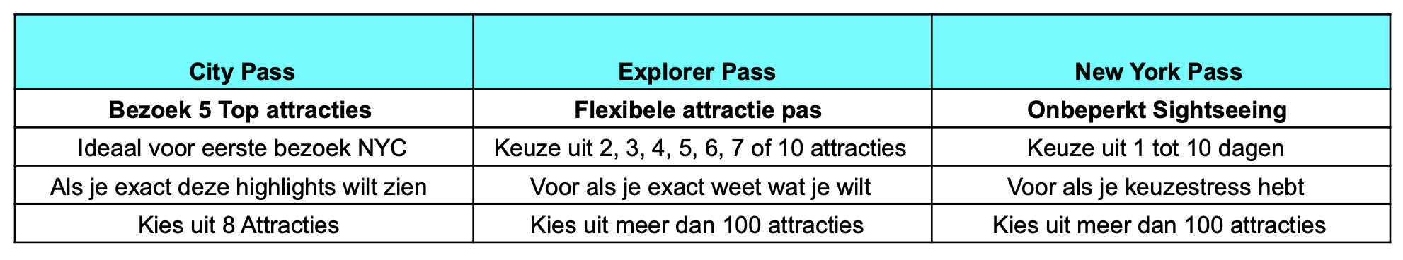 Keuze uit meer dan 100 attracties in New York.